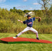 The Two Piece Turf Practice Portable Pitching Mound is perfect for batting practice, bullpens, athletic facilities, and gymnasiums. The full body, high performance poly protected resilient core construction gives pitchers a solid yet cushioned landing area reducing knee and ankle strain. The poly coating grips gymnasium floors without scratching. Practice mounds come with the most durable turf and is available in Red, Clay, Tan, and Green colors. Simulated rubbers last 10 times longer than industry standards. The two piece design allows easy moving and storage, less than 70 lbs. per section!